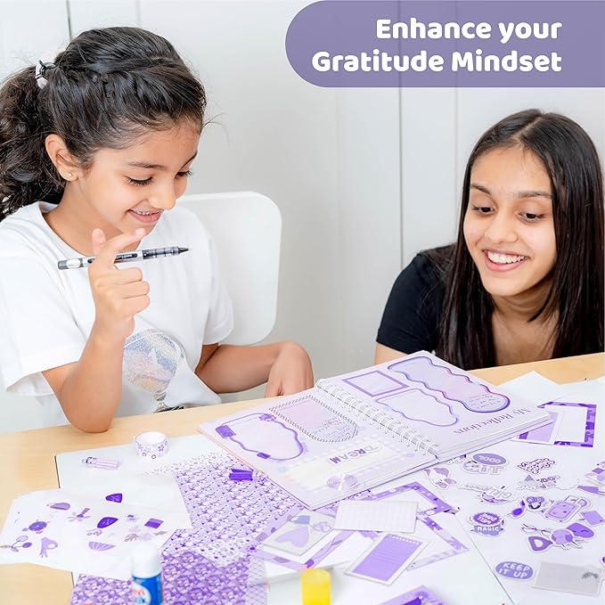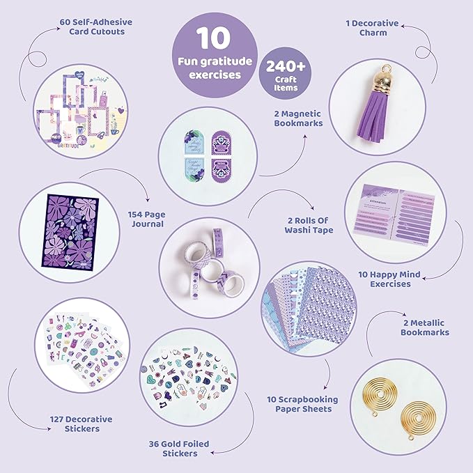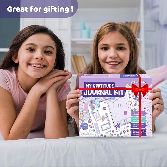 jackinthebox Gratitude Journal Kit for Girls Ages 8-12, 242 pcs, Scrapbooking Journal Set for Teen & Tween Girls,10 Fun Gratitude Exercises, Journal Art & Craft Kit, Ideal Gift for Girls 8 9 10 11 12