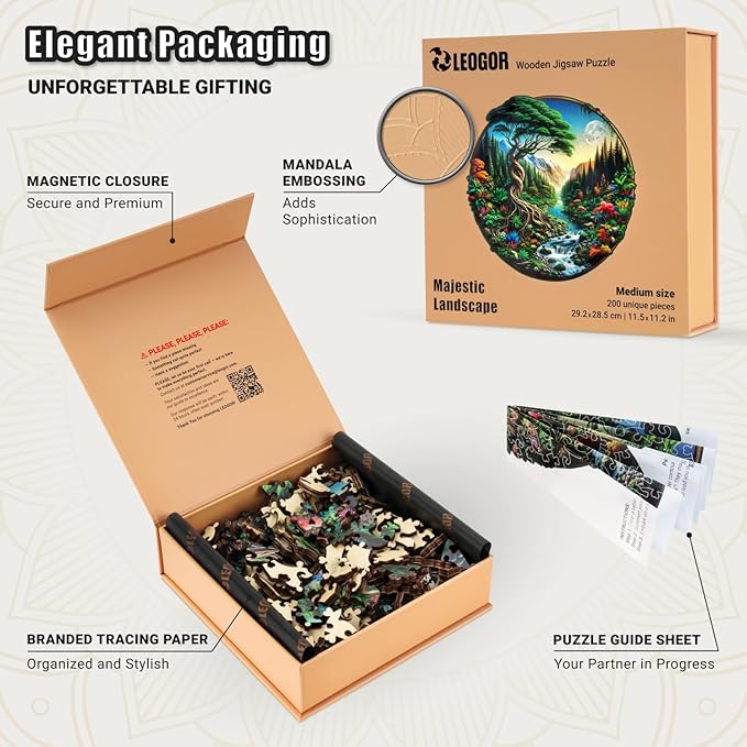 - 【 READY TO GIFT 】 Every LEOGOR wooden puzzles for adults set arrives in a magnetic box with lifetime piece replacement — a thoughtful premium puzzle gift for adults, perfect for cute puzzles for women, men, or puzzles for teen girls or boys