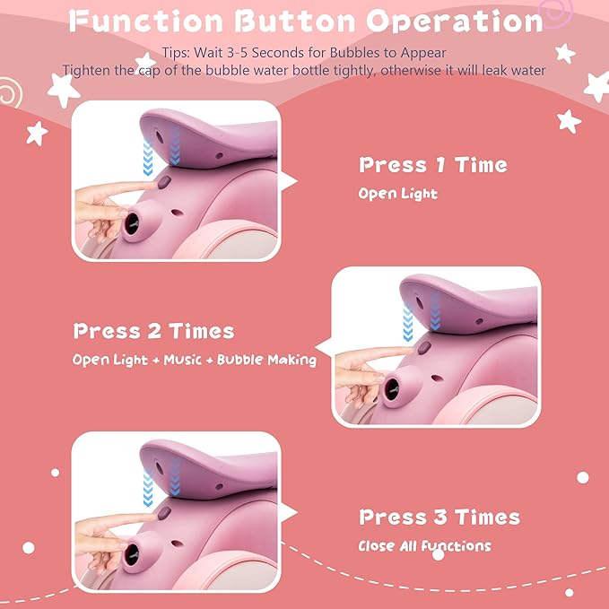 - Ensuring Safety First: Our electric baby balance bike with bubble maker ride on toy not only promotes fitness and balance in young children but also encourages babies to utilize their legs, thereby strengthening leg muscles and establishing healthy exercise habits from an early age. It fosters balance, coordination, self-confidence, and independence. Featuring a lower floor-to-seat height, even the smallest tots can enjoy a smooth and secure ride-on experience.
