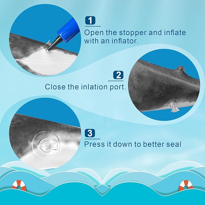 - Crafted with Auality and Care: The inflatable shark is made of waterproof PVC material, which features good air tightness and surface smoothness; It is reusable and reliable, easy to fold and store, not easy to deform under normal conditions.
