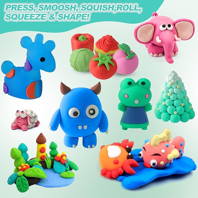 - Art and Crafts for Kids: Our modeling clay is soft, non-sticky and easy to shape. It does not need to be baked and can be dried naturally, so it is easy for beginners to get started. With the included clay sculpting tools, your children can quickly start shaping their artwork! This colorful magic clay is perfect as a birthday and holiday Gifts for children.