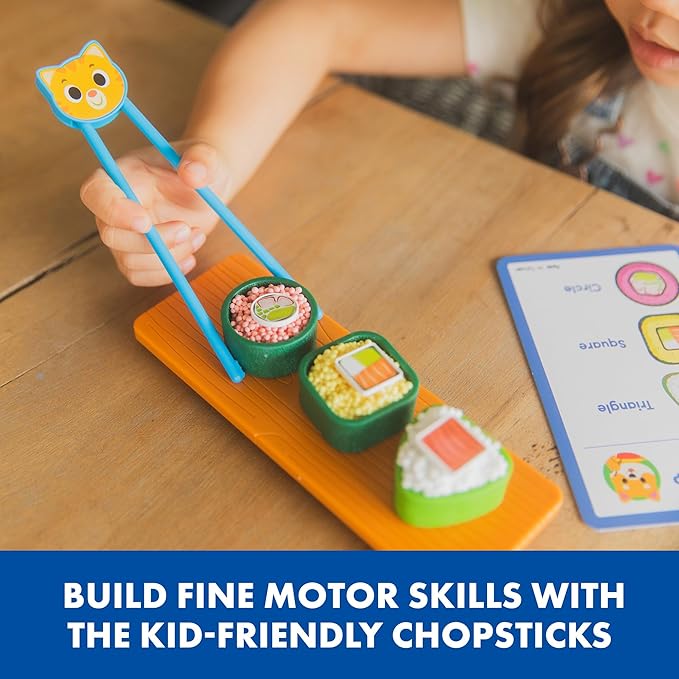 - LEARNING THROUGH PRETEND PLAY: Use the easy-squeeze chopsticks to pick up sushi toppings and Playfoam as you complete sushi order cards - practicing counting, shapes, and patterns at the same time