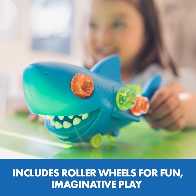 - IMAGINATIVE PLAY: Use the tools to build the shark, then get creative with imaginative play! The roller wheels on the shark's belly encourage pretend play, indoors or outdoors