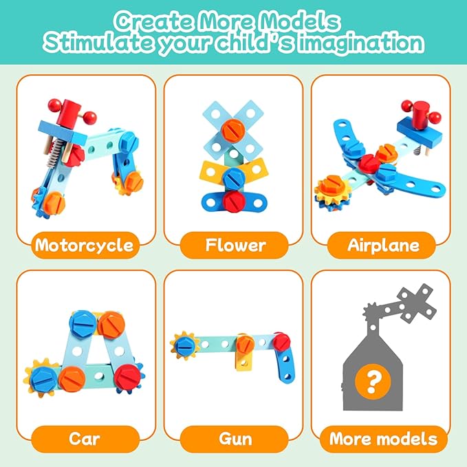 - STEM Learning Through Play: Designed as Montessori toys, this tool set allows your toddler to use tools safely while mimicking carpentry tasks. Through fun-filled activities like screwing screws, hammering nails, and building creative shapes like windmills and helicopters, children can improve their fine motor skills, hand-eye coordination, and problem-solving abilities. This tool set can inspire age 2 3 4 5 + kids' creativity, encourge them to create more models!
