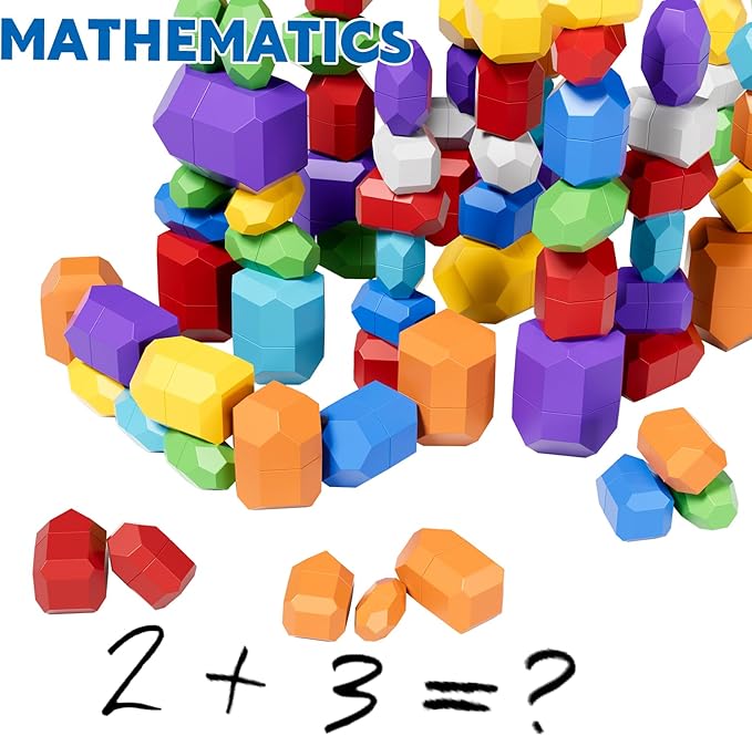 - 【Great Montessori Toddler Toys】 This Montessori toy for 1 2 3 4 year old is very suitable for toddlers. Toddlers aged 1 2 3 4 can improve their grasping, counting, and sorting skills by stacking rocks. When the toddlers grow up a bit, they may also use the stacking rocks to form letters, draw, and stacking games, helping them develop patience, independent thinking, motor skills, hand-eye coordination, imagination, and spatial awareness.