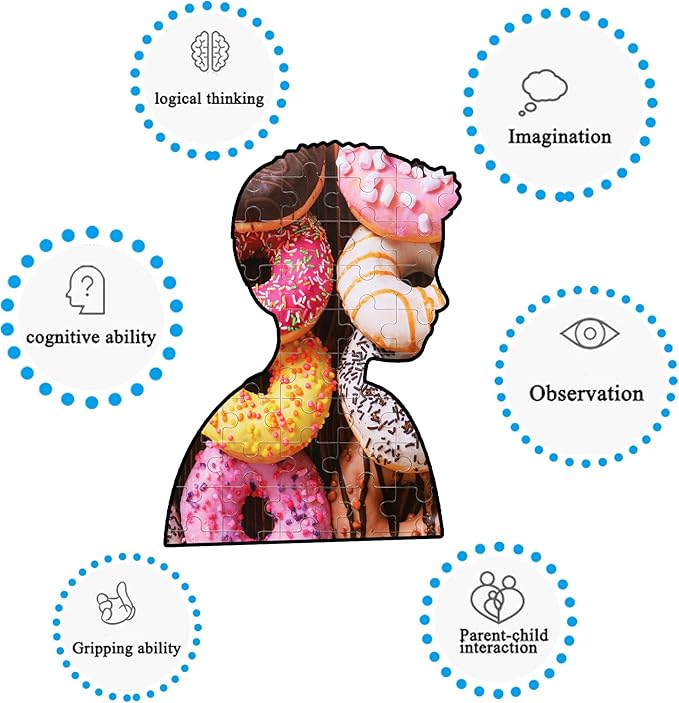 - Donut Puzzels for Kids-- Every Package Includes Puzzle Pieces,a Tin Box, An Original Picture.Sturdy Boxes Are Perfect For Gifting,Stacking And Storage.Puzzles Can Bring Entertainment And Fun Time To Everyone!and Help Children Gain A Sense Of Accomplishment In The Puzzle Process.