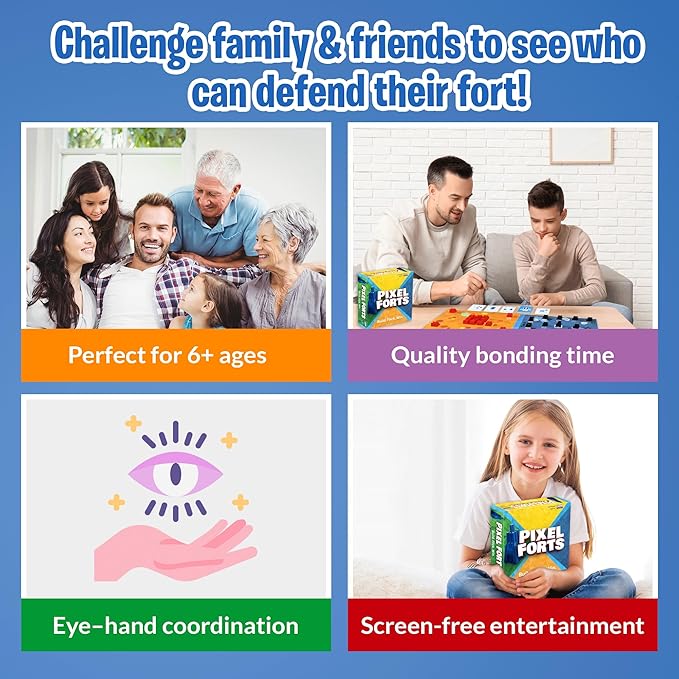 - ENHANCES COGNITIVE & DEXTERITY SKILLS: Our Pixel Fort table game is not just a social game, but a brain game too! Naturally learn & improve your problem-solving, strategic planning, and pattern recognition skills in the most amusing way possible.