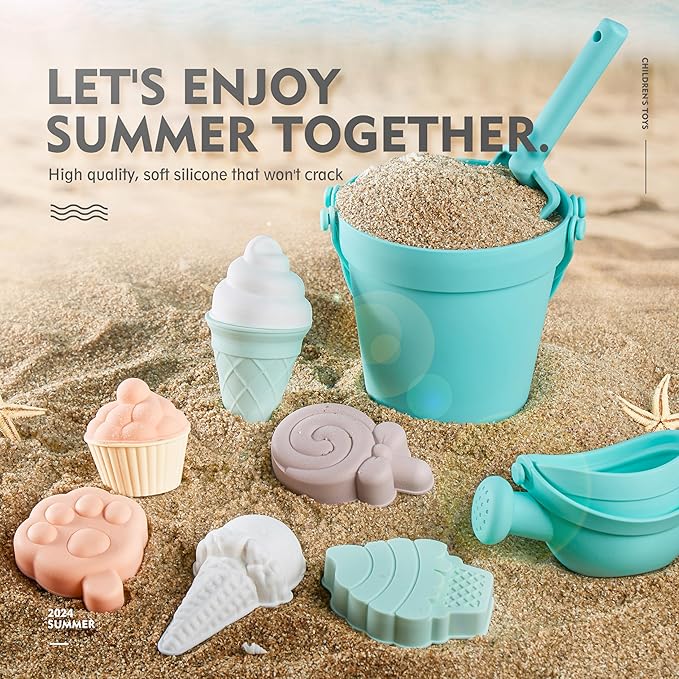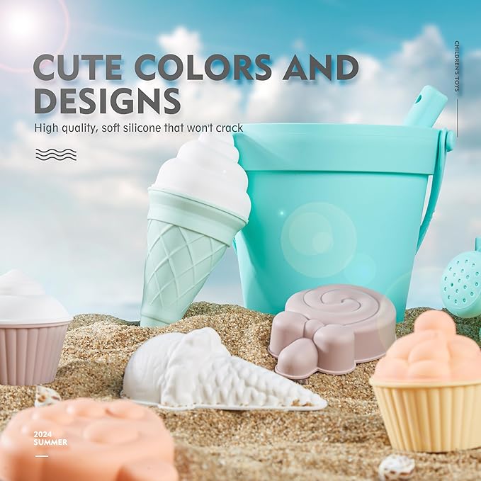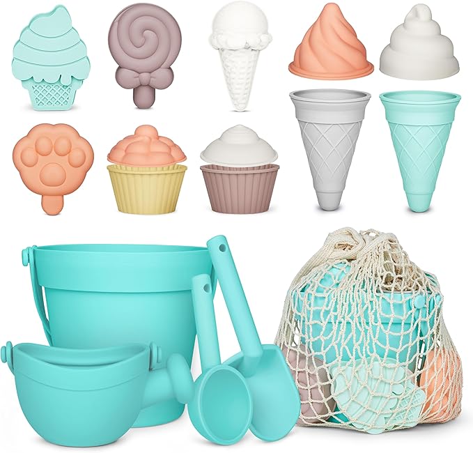 - Versatile:This set contains all the beach essentials for keeping your children engaged for hours.Let your children use the silicone molds to make fun shapes in the sand.Easy to clean,you can also use them in the bath