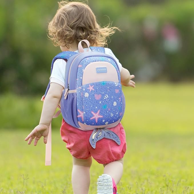mommore Toddler Backpack for Girls 2-4 Neoprene Backpack with Kids Leash, 3D Cartoon Preschool Kindergarten Bookbag for Pre-k, Mermaid