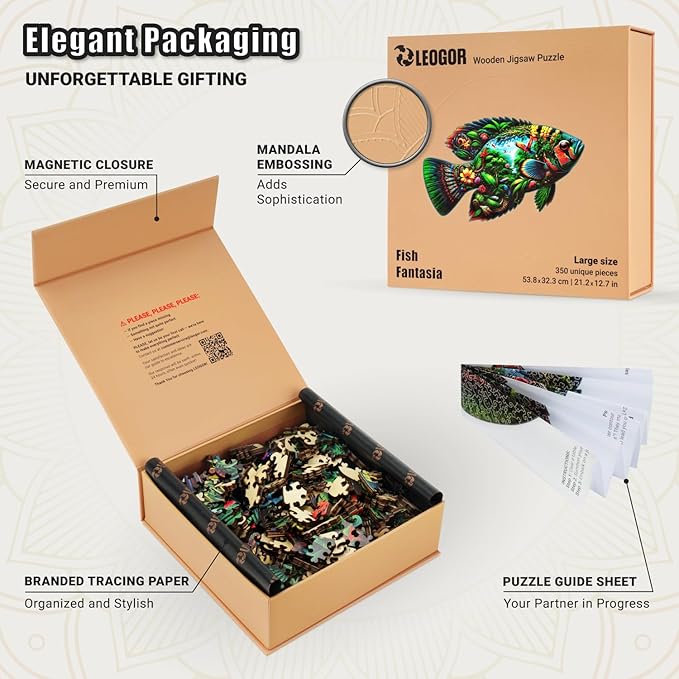 - 【 STRONG & SMOOTH CONNECTION 】 Most wooden puzzles for adults use 3mm boards. This LEOGOR fish puzzle is crafted from 5mm solid wood for strength, precision, and a premium feel. Each wooden puzzle piece connects perfectly for a lasting experience