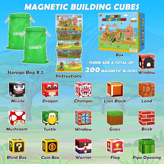 Magnetic Blocks - 200PCS Build 3D Magnet Building Toys World with Magnetic Tiles, STEM Kids Sensory Toys, Toy Magnet Building Set B-Day Gifts for Age 3 4 5 6-10 Year Old Boys Girls