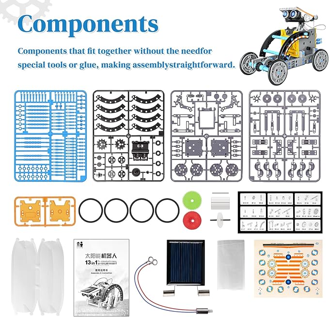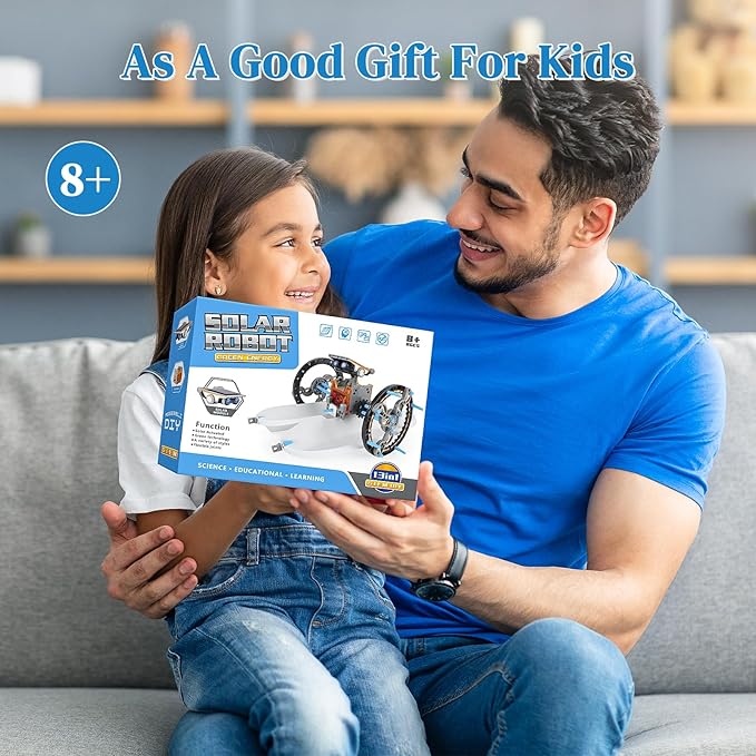 - [As Gifts for 8 Age+ Kids] STEM solar robot toys have educational value and can stimulate children's curiosity and hands-on ability. It is a good choice for Children's Day, birthdays, anniversaries, New Year, Christmas and other festivals.