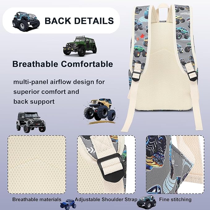 - Wonderful design: Back to school with this super cool car backpack, it will make you kids to be the hot topic of playground for its fun, personalized and cute little dinosaur pattern , let your kids become more confident and help them adapt to kindergarten life easily, raise and capture your little one's imagination and curiosity about nature at the same time.