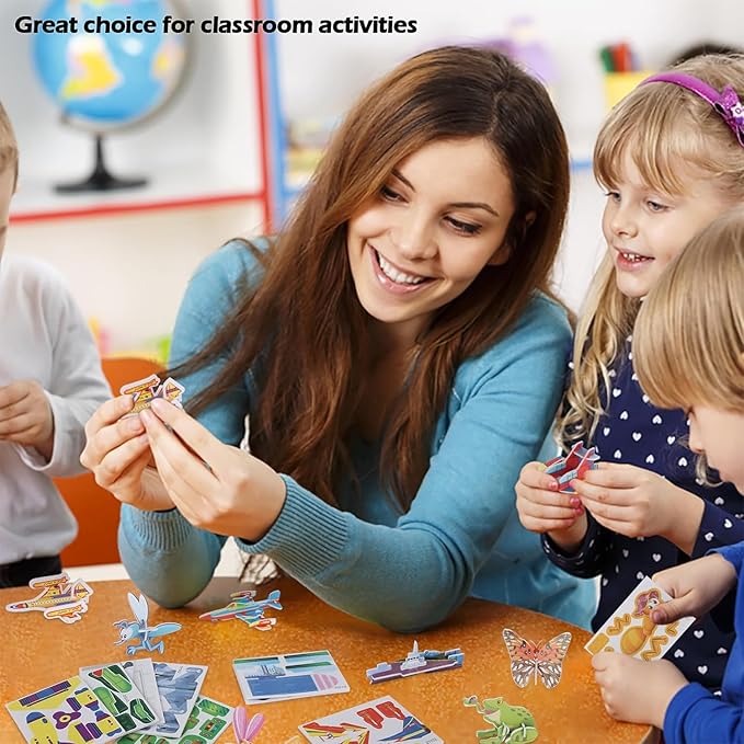 100PCS Educational 3D Cartoon Puzzle for Kids - Insects, Dinosaurs, Animals, Vehicles Themed 3D DIY Cardboards for Boys & Girls Gift Party Supplies