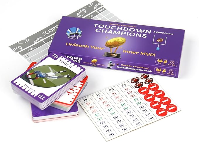 - ✔ Touchdown Champions - Football Card Game by SanDim Creations. Bring the thrill of football to your tabletop with Touchdown Champions, a fast-paced, strategy card game for 2 to 4 players, ages 14 and up. Perfect for football fans and gaming enthusiasts, this game challenges players to race to the End Zone, using clever tactics to outsmart their opponents. Whether it’s a head-to-head duel or a multiplayer showdown, each play will have you on the edge of your seat!