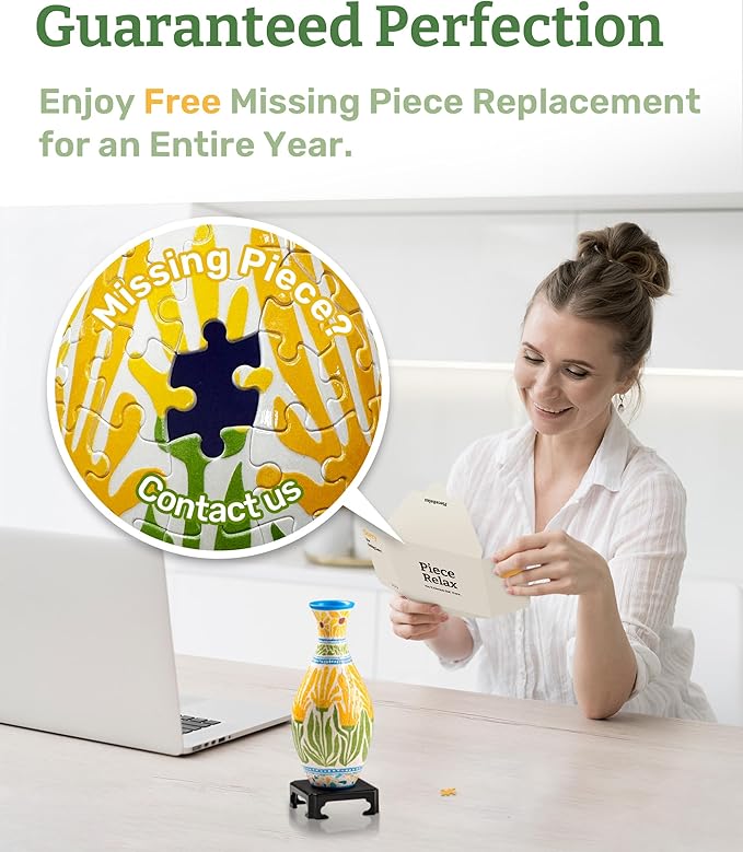- Challenging 3D Puzzles for Adults - The pattern on this puzzle vase is so vivid and eye-catching, it'll be sure to add a touch of personality to any room. Plus, PieceRelax offers missing piece replacement for free.