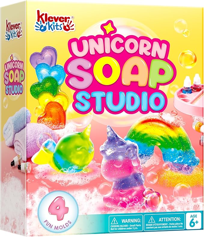 Klever Kits Unicorn Soap Making Kit- 4 Molds Girl Crafts DIY Project, Unicorn Girl Gifts, Kids Birthday Gift for Aged 6+, Science STEM Activity Teenage Gifts for Toddler Ages 6 7 8 9 10 11 12