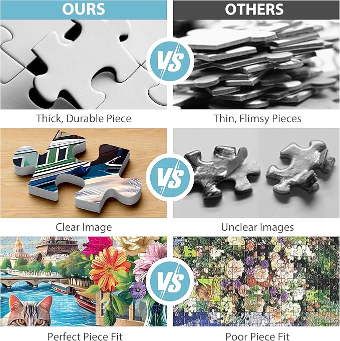 - Highest Quality Materials Puzzle: Crafted from the highest quality materials, this 500 pieces jigsaw puzzle offers durability and a premium feel. Each piece fits seamlessly, ensuring a satisfying experience from start to finish. The vibrant colors and intricate design make it a perfect choice for puzzle enthusiasts