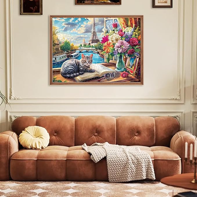 - Charming Wall Art: These vibrant puzzles for adults provide more than just a fun activity. Once completed, they measure 20.5 x 15 inches (52 x 38 cm) and make beautiful wall decor. Frame the cat Paris jigsaw puzzle to infuse any room in your home with romantic charm