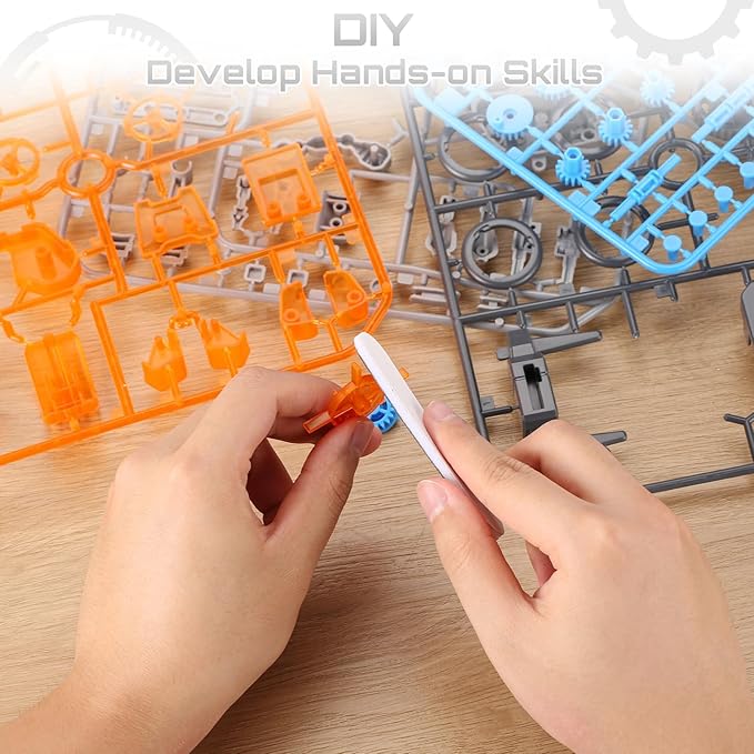- Suggestion: Pay attention to safety when cutting parts, use tools to polish the small parts before building. Our packing included a grinding tool to help you make the parts smoother. Keep the parts organized in small zip-lock bags after cutting or playing