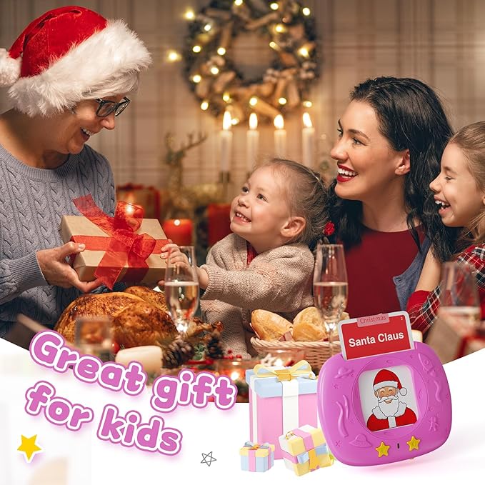 Toddlers Talking Flash Cards with American Accent & 288 Sight Words, Speech Therapy Toys for 1 2 3 4 5 6 Years Old Boys and Girls, Learning Montessori Sensory kit, Kids Birthday Gifts (Pink)