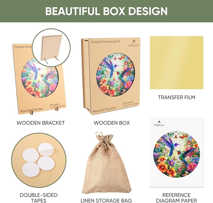 - 【UNSURPASSED QUALITY】: The top production technology, we use 5mm thick HDF wood, UV printing, laser cutting, precision 0.03mm. The texture is extremely smooth, they will not break or fade, free of formaldehyde and odor, and have perfect locks! Our vintage hummingbird wooden puzzles can be surprisingly preserved for decades