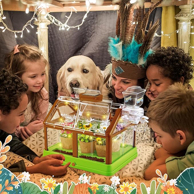 - 【Teach Kids About Plant Growth】The kids plants growing kit is a great option. Kids garden achieves its goal of motivating and teaching young kids how to grow plants and how a greenhouse works.