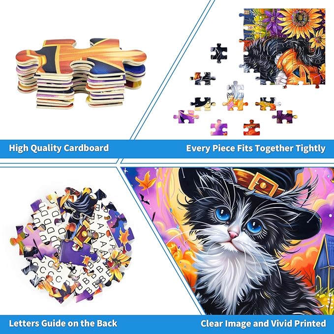 100 Piece Puzzles for Kids, Halloween Cat 100 Piece Puzzles for Adults, Cute Kitten Halloween 100 Pieces Puzzle for Kids Ages 4-8, Jigsaw Puzzle for Seniors Teens Brain Teaser