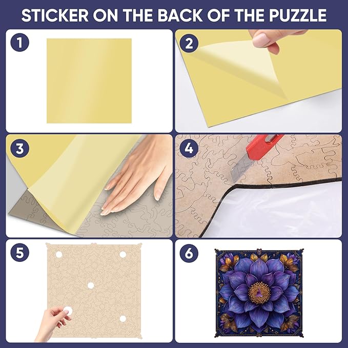 - 🌳【What You Get】:1 x unique shape wooden jigsaw puzzles, 1 x Reference picture, 1 x Puzzle Saver sticker, 4 x Double-sided Tapes, 1 xStorage bag & Wooden Box