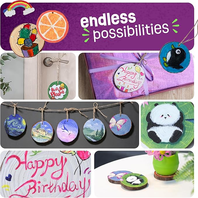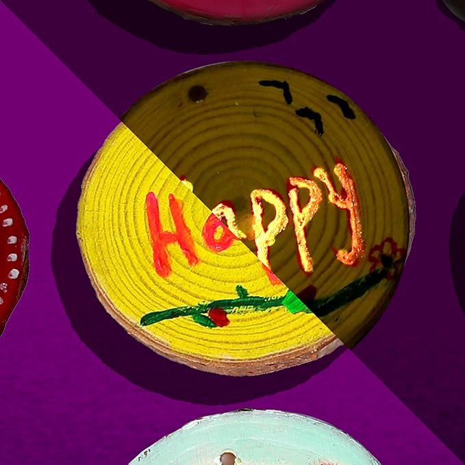 - FUN & EASY TO USE: Paint the wooden discs with vibrant neon colors, decorate them with gems, glitter, and stickers, and finish with glow-in-the-dark puffy paint for a stunning effect. Hang them up as decoration, or give them to friends and family. Easy-to-follow instructions ensure a hassle-free experience for kids and parents alike.
