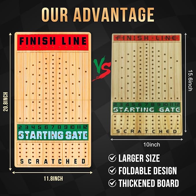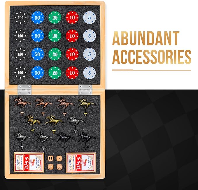 - Best Gift Idea: If you're looking for a gift for a horse racing enthusiast, this horse racing board is the perfect choice! Our products are not only entertaining family board games, but also exquisite craft. In addition, we also provide a beautiful gift box, so there is no need for the gift giver to repack. This table top game for adults and family is the perfect gift for any horse racing enthusiast, family game night, or gambling, helping all players enter the fascinating world of horse racing!