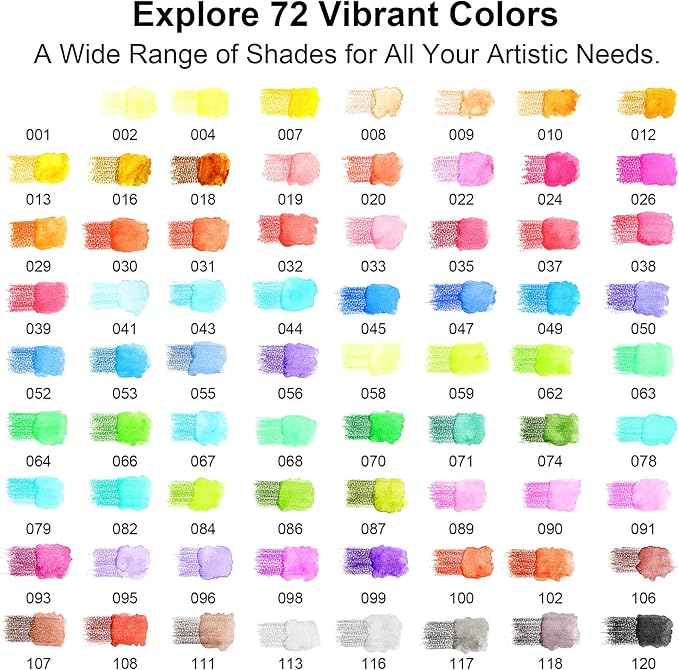 - Perfect Gift for Artists: Whether you're a seasoned artist or just starting out, this 72-color water-soluble colored pencil set is an excellent addition to your art supplies. It also makes a thoughtful and impressive gift for art enthusiasts, students, and professionals who appreciate high-quality art materials.