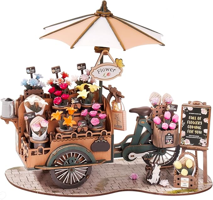 ROBOTIME 3D Puzzles for Adults DIY Model Kit to Build Floral Cart Wooden Puzzle Craft Kit Toy Hobby Gift Home Decor