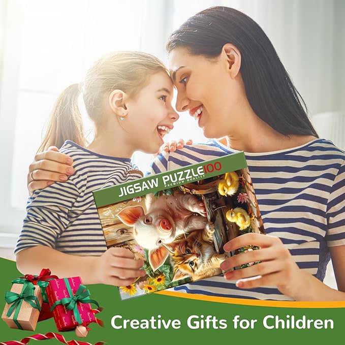- ๐ฑ[Attractive 100 Piece Puzzles for Kids]๐ทThe images of this 100 piece puzzles for kids are vivid and interesting, and it will bring you into the world of cat and pig! A little pig and a furry kitten are watching you! How cute they are! This is a nice opportunity for children to get to know animals!