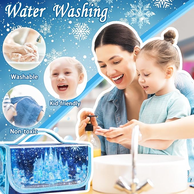 - 【Frozen Travel Coloring Kit for Kids】 The frozen castle case contains four zippered compartments, making it easy for your little girl to keep her pens organised. When she is finished coloring, she can stow the case away, closing it with a velcro fastener. It super easy for kids to travel with it with the carry handle, whether in the play house game or on holiday. It can also be used for thing.