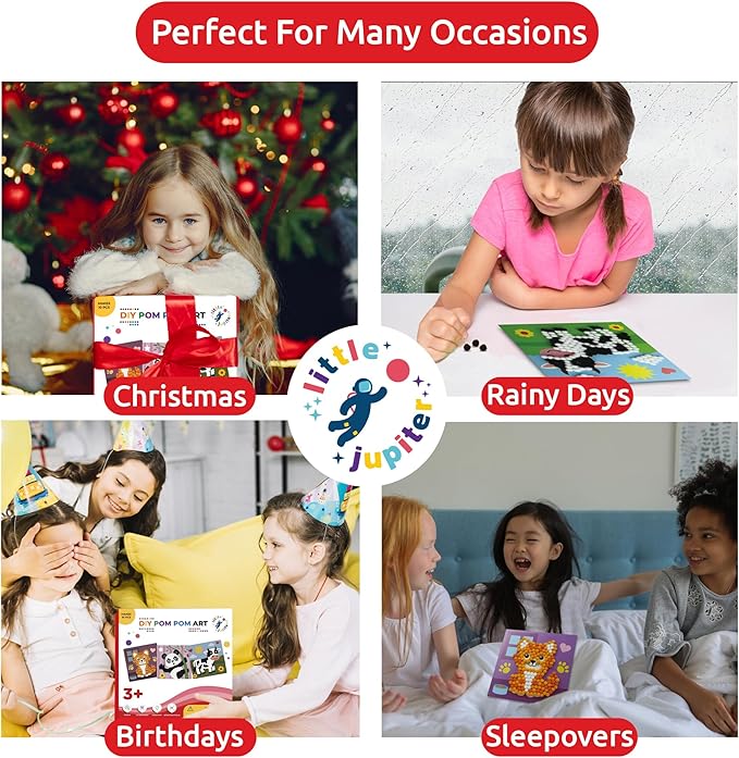 - The Best Gift For Kids : Little Jupiter craft kits for kids ages 3-5 make a great gift. Perfect for birthdays, holidays, Christmas, Hanukkah, & more. Pom pom crafts make the perfect preschool crafts for kids ages 3-5.