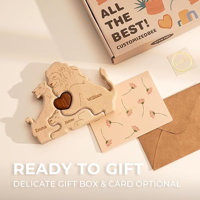 Wooden Lion Family Puzzle, Personalized Puzzles with 2-5 Names, Mothers Day Birthday Gifts for Women Men, Customized Home Decor Housewarming Gifts for Parents Couple Friends