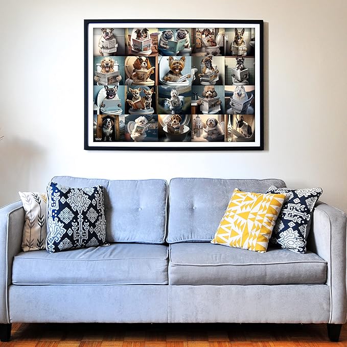 - 【Pooping Dogs】 - This puzzle is perfect for dog lovers and puzzle enthusiasts alike, with its vibrant colors, high-quality pieces, and 20 adorable dog including Bulldog, Boxer, Corgi, Saint Bernard, German Shepherd, Poodle, Labrador, Smoyed, Cavalier King Charles Spaniel Collie, Beagle, Boston Terrier, Chihuahua, Golden Retriever. These furry friends are doing number two on the toilet while reading a newspaper or a book.