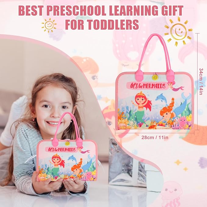 - 【Montessori Busy Board】Hooku Toddler Busy Board feature 10 different pages of activities to developing fine motor skills, plus 2 lovely mermaids on its front & back covers. In addition, the flexible zipper allows it to divide into 5 busy boards so kids can play together!