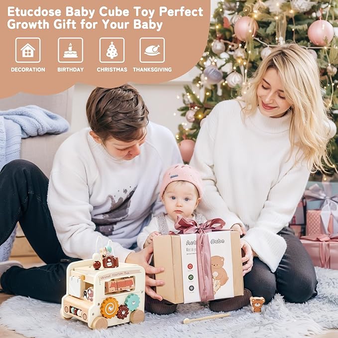 - 🎨Montessori Educational Toys: The wooden Activity Cube toy is carefully designed with 8 different ways of playing, covering a variety of fun activities, including shape color matching, xylophone, hand-eye coordination, fine motor skills, etc., in line with the montessori early education concept. From cognitive development to hands-on ability training, it fully meets the growth needs of children and allows children to continue to progress while playing