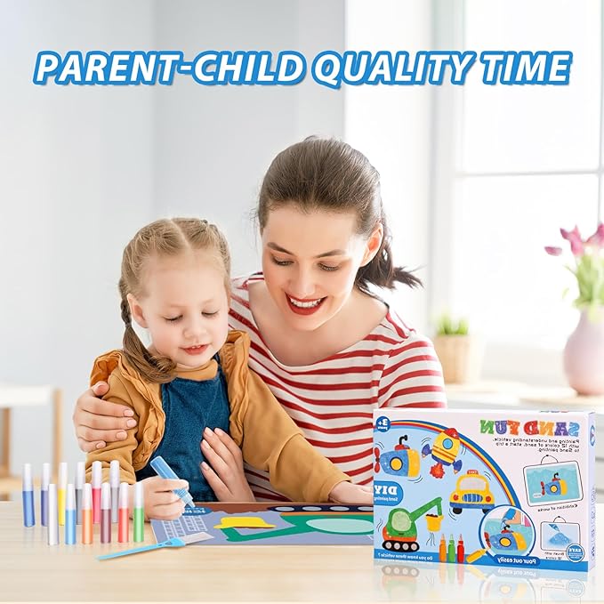- Traffic Adventure: Featuring 16 exciting vehicle designs, our kit offers a thrilling theme for kids to explore. Create stunning sand paintings while fostering a love for creativity and art—ideal sand toys for boys & girls ages 8-12.