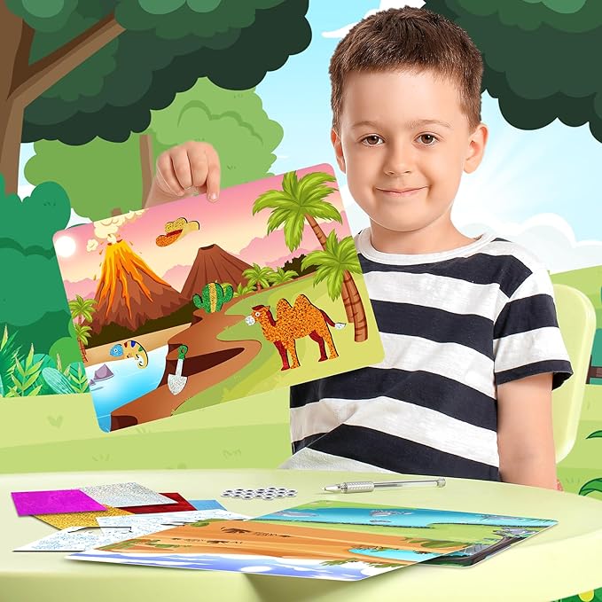 PERRYHOME Foil Arts and Crafts Kits-DIY No Mess Animal Fun Foil Paper Craft Kits,Non-Toxic Kids Car Airplane Travel Activities Toys,Gifts for 4 5 6 7 8 Year Old Girls Boys Toddler Children