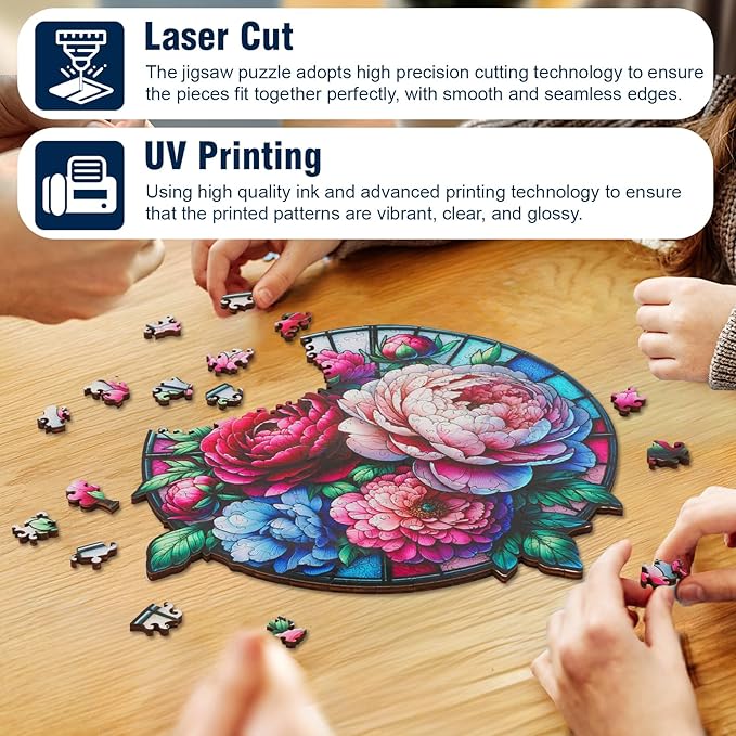- CHALLENGE PUZZLES: Take pleasure in the Hopelucr peony flowers wooden jigsaw puzzles. Measuring 11.23" x 10.95" (28.5cm x 27.8cm) and consisting of 200 pieces, ideal for adults and kids 12+