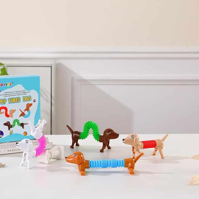 - 【Fidget toys for kids】Dog pop tubes Consists of a tube and a mechanical body, the dog has mechanical legs, easier to stand firm, the head and tail can be rotated, the tube can be popped and stretched with a crisp sound when stretched, treasure box toys for classroom,animal toys,Toy Dog,toys for ages 5-7