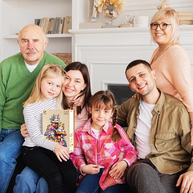 - [Wooden Jigsaw Puzzles for Adults Kids] - This cat family shaped jigsaw puzzle is made of high quality natural wood, safe and durable. The wooden puzzle is a colorful puzzle with clear and vibrant images that won't fade over time. Advanced laser cutting technology gives the adult puzzles very smooth edges and a very comfortable feel, protecting your hands from injury.