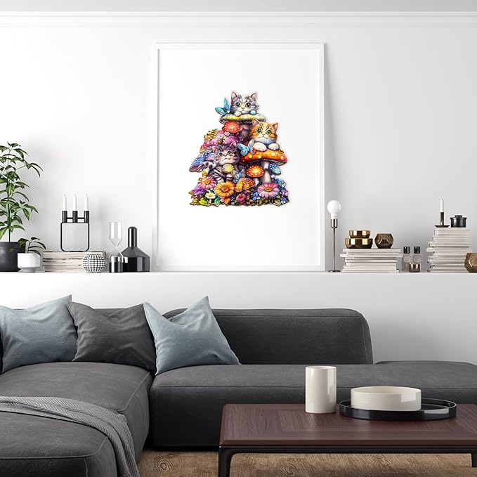 - [Wooden Jigsaw Puzzles for Adults Kids] - This cat family shaped jigsaw puzzle is made of high quality natural wood, safe and durable. The wooden puzzle is a colorful puzzle with clear and vibrant images that won't fade over time. Advanced laser cutting technology gives the adult puzzles very smooth edges and a very comfortable feel, protecting your hands from injury.