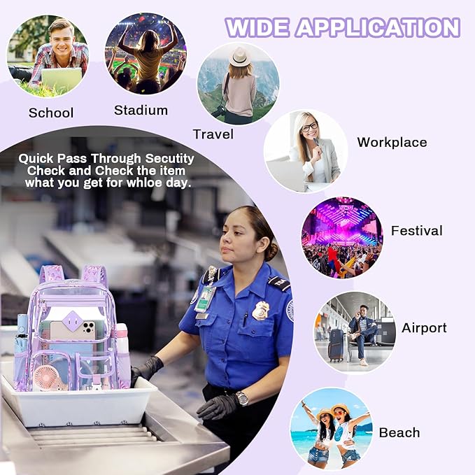 - Multipurpose Use: The waterproof see through backpack is suitable for multi-occasions such as colleges,workplaces,concerts,airports ,sporting events, outdoor events,hiking, camping, beaches; Ideal clear bookbag for above 8 years old.