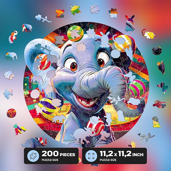 ESC WELT Wooden Puzzle Elephant 200 Pieces - Captivating Mind Entertainment for Teens and Adults - Fun and Environmentally Friendly Toy - Challenging Jigsaw Game - Wooden Puzzle