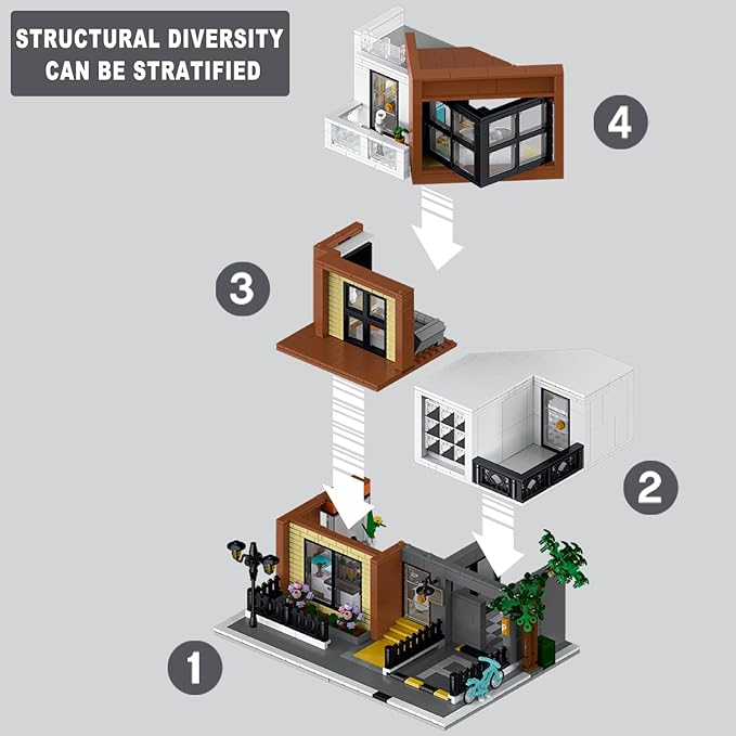 - 3 Levels Modern Villas Architecture model build is created Building Blocks with 1399 pieces,creative exclusive lighting design,presenting amazing lighting effects and a warm vibe. This set is the perfect addition to any adult or teen's Architecture collection and can be played with or used for disp