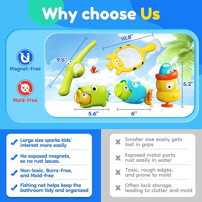 Mold Free Kids Bath Toys - Toddler Fishing Game with Fishing Net, Birthday Gift for Boys and Girls Ages 3-5, Great Water Toy for Bathtub, Swimming Pool, and Beach Fun